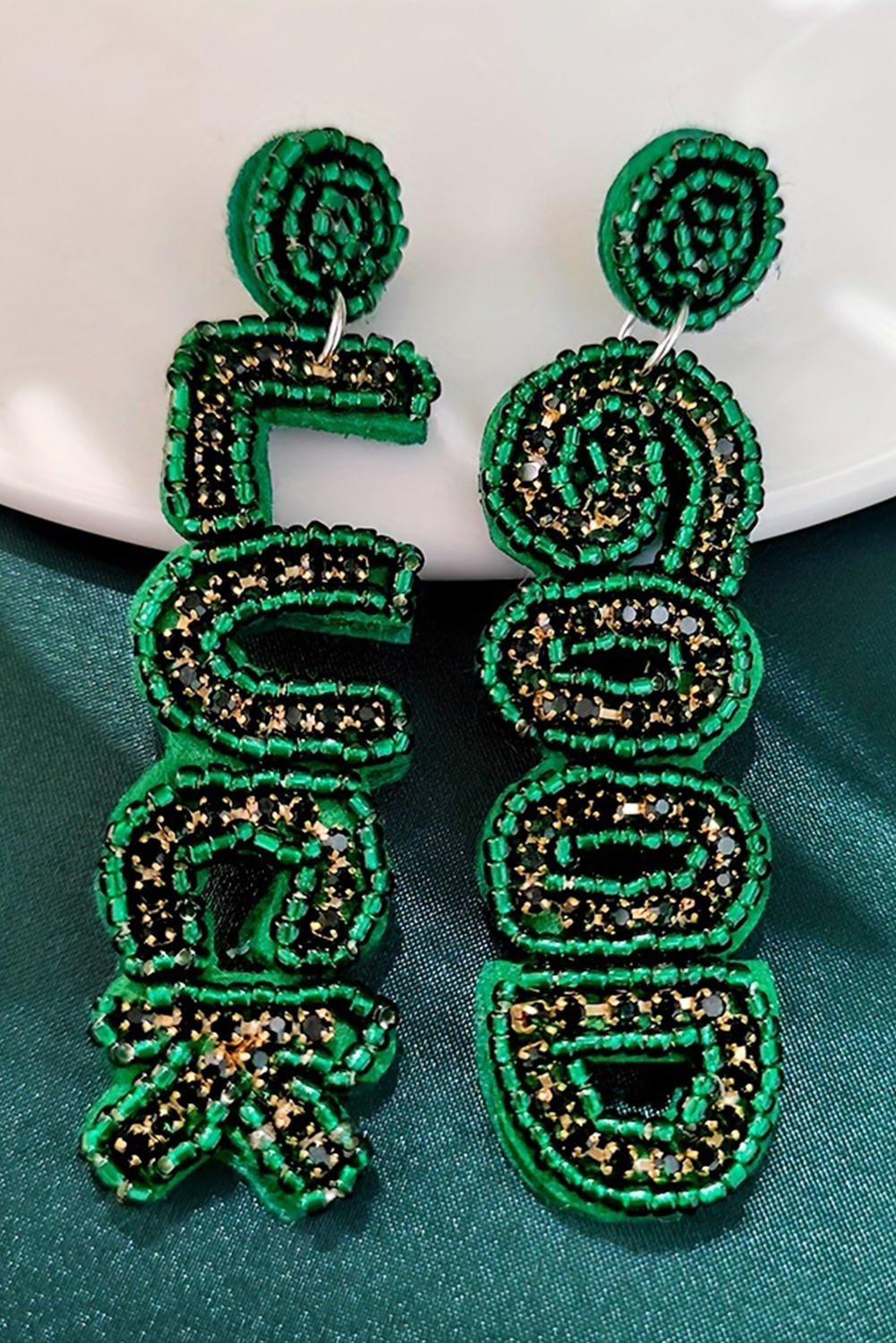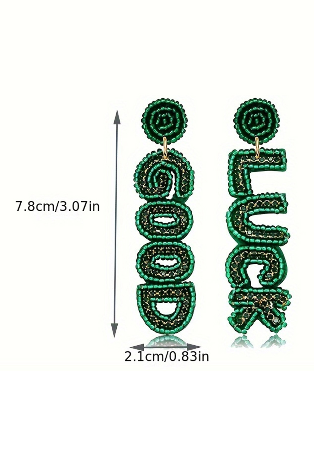 Blackish Green GOOD LUCK Rice Beaded Dangle Earrings