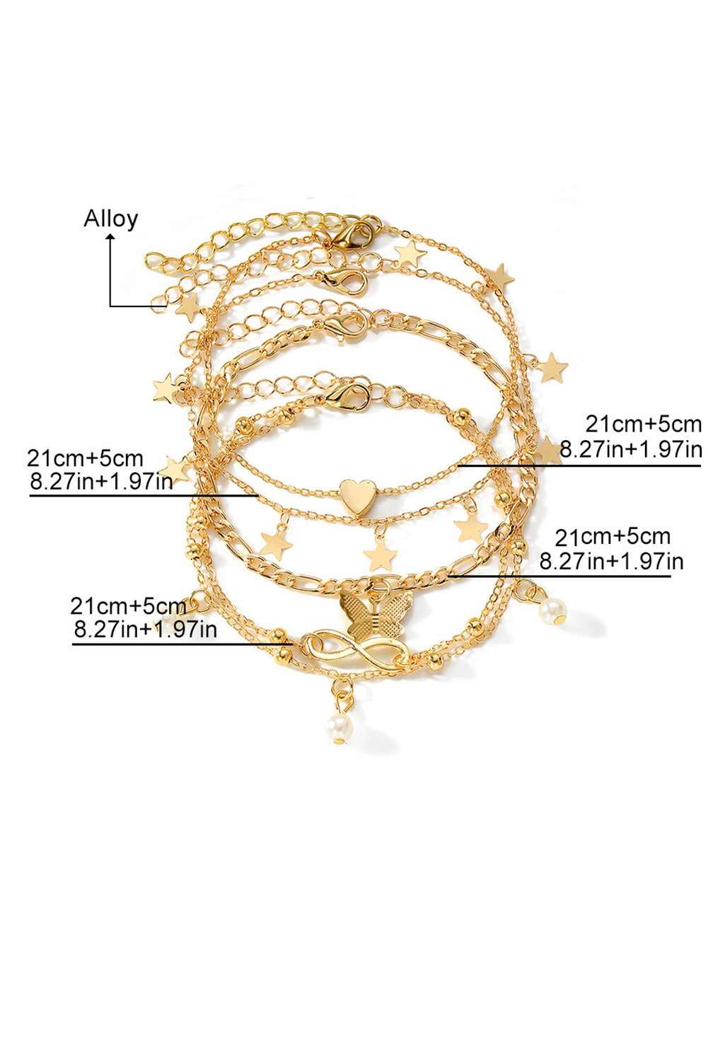 Gold Pearl Butterfly Multi-layer Pendant Anklet