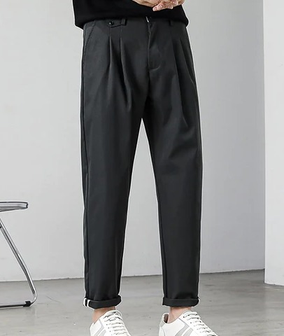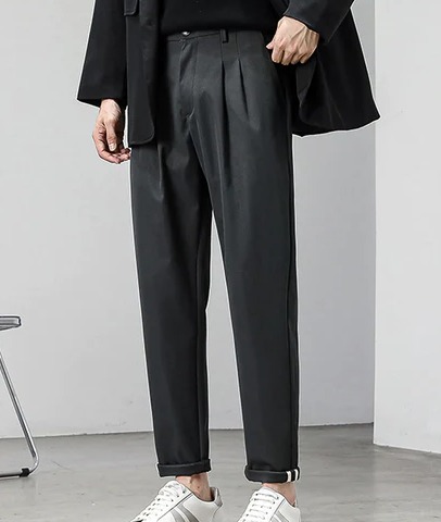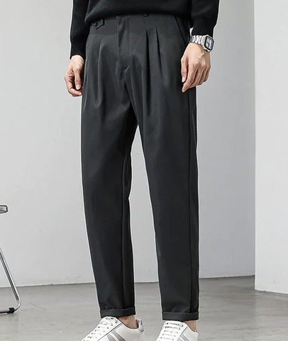 Details: Button, Pocket, Zipper, Plicated, Tape Material: Fabric Fabric: Slight Stretch Length: Long Waist Line: Natural Sheer: No Pattern Type: Plain Composition: Polyester Fit Type: Regular Fit Pockets: Yes Closure Type: Zipper Fly Season: All Location: All Color: Dark Grey Fabric Type: Woven Body: Unlined Care Instructions: Machine wash or professional dry clean