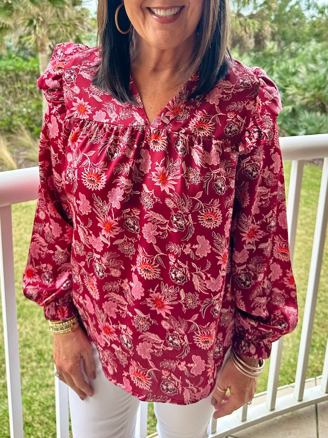 Details: Belted Color: Blue Composition: Elastane, Polyester Material: Fabric Fabric: Slight Stretch Sleeve Length: Long Sleeve Sheer: No Neckline: V neck Location: All Pattern Type: All Over Print Fabric Type: Woven