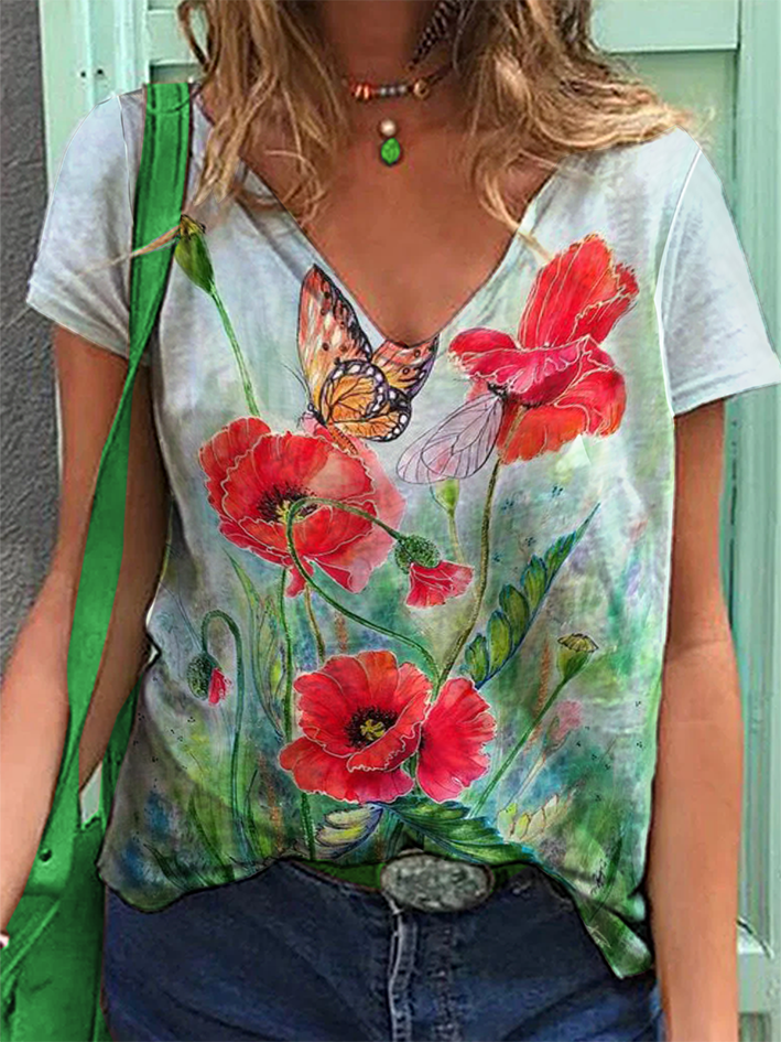 Baby Ruffle Trim Bow Front Top & Floral Print Layered Skirt