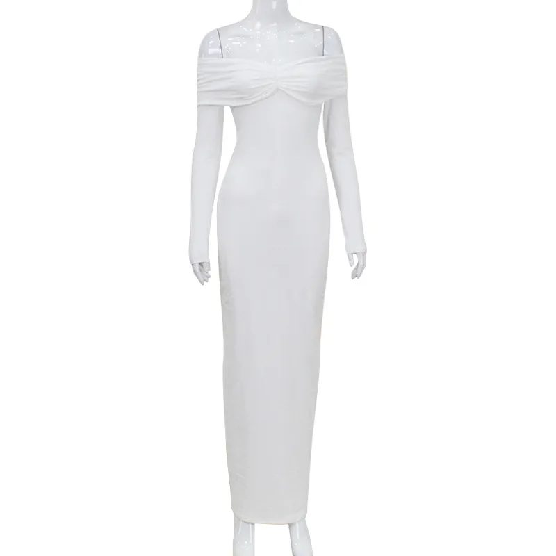 Women's Adults One-Step Skirt Elegant Half-open Collar Pullovers Open Collar, Pleated, Bare Shoulder, Waist, One-Step Skirt Long Sleeve Solid Color Maxi Long Dress Banquet Stage
