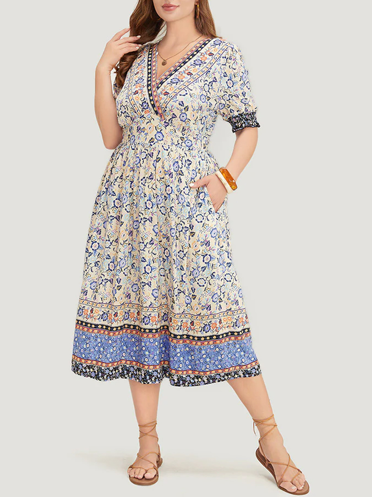 Women's Pencil Skirt Elegant V Neck Short Sleeve Solid Color Midi Dress Holiday Street