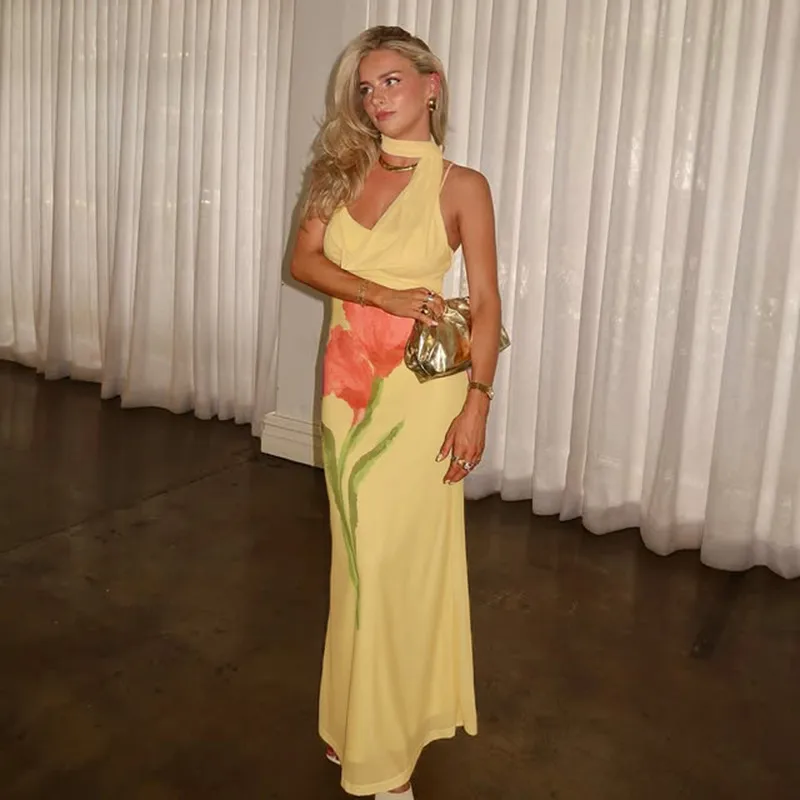 Women's Sheath Dress Elegant Strap Sleeveless Flower Maxi Long Dress Holiday