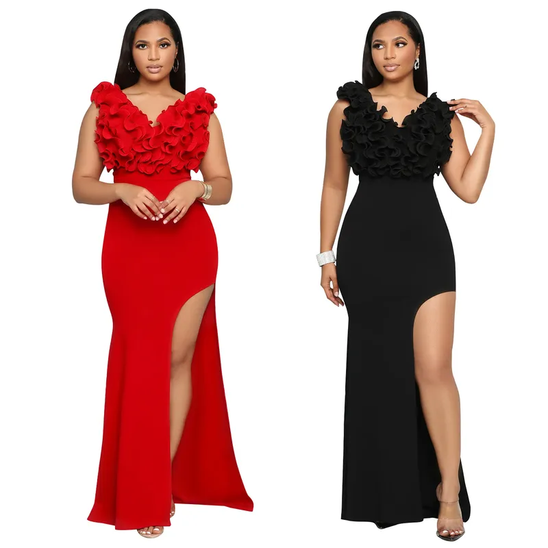 Wholesale Women's Sheath Dress Vacation Simple Style V Neck Sleeveless Solid Color Maxi Long Dress Holiday