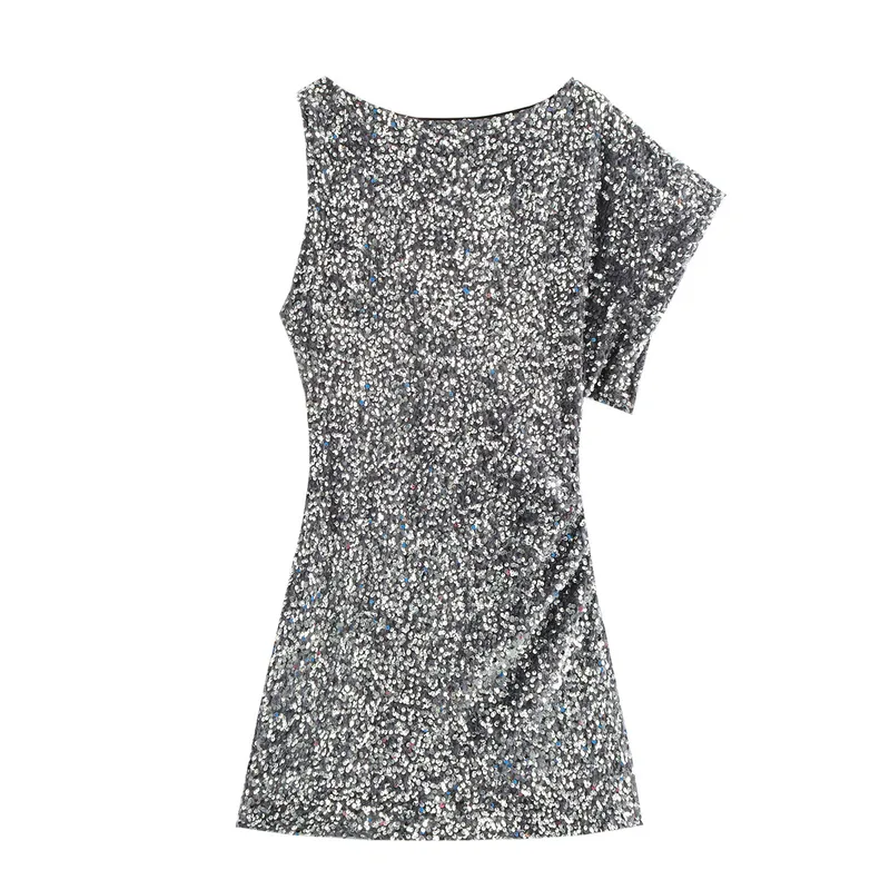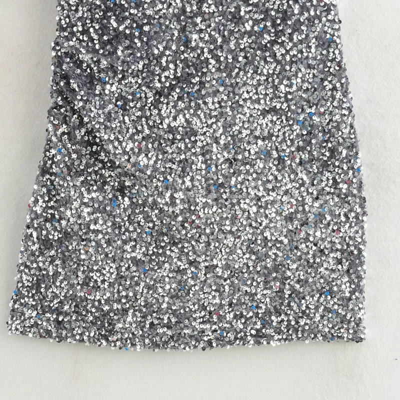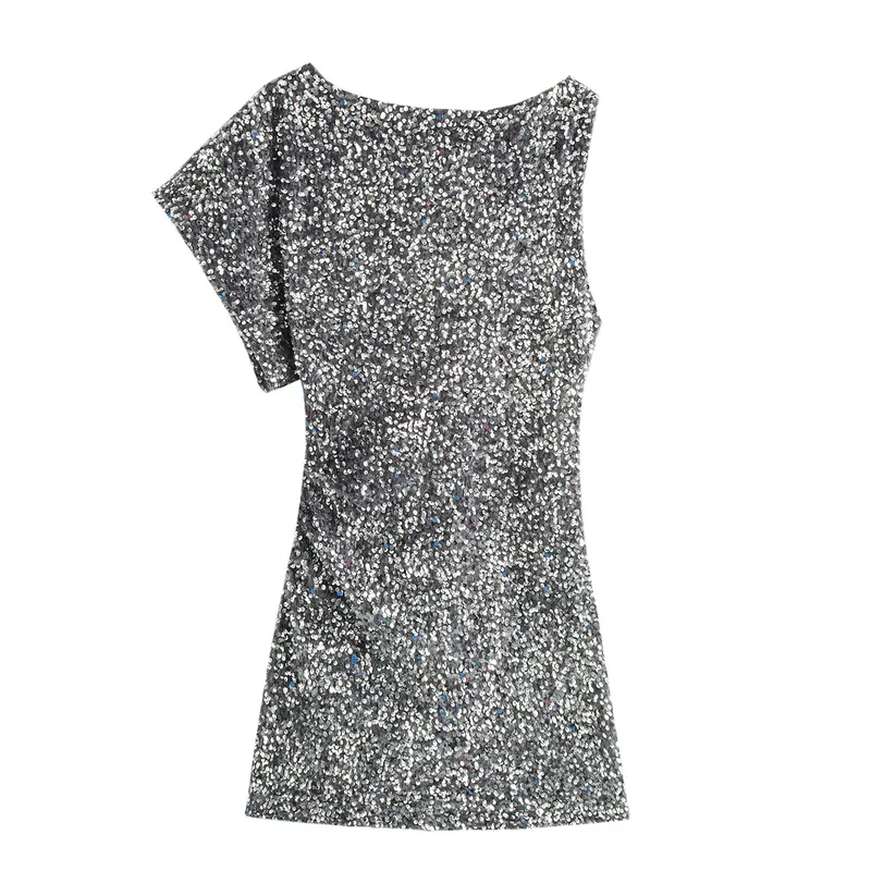 Wholesale Women's Sheath Dress Vacation Simple Style Round Neck Sequins Sleeveless Solid Color Above Knee Holiday