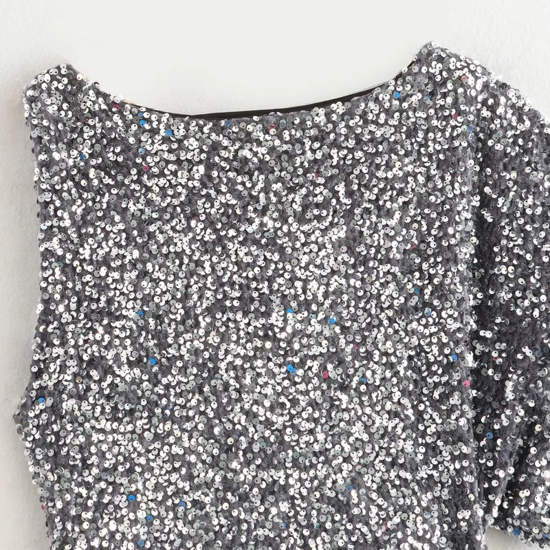 Women's Sheath Dress Vacation Simple Style Round Neck Sequins Sleeveless Solid Color Above Knee Holiday