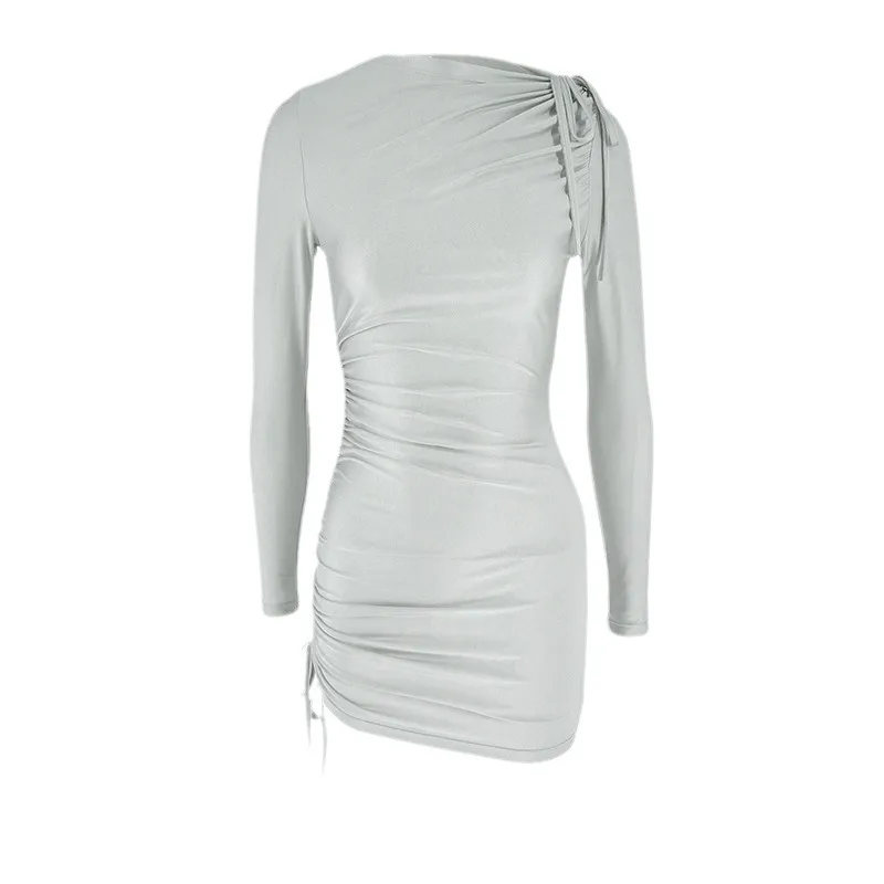Wholesale Women's Hip skirt Sexy Round Neck Long Sleeve Solid Color Above Knee Cocktail Party