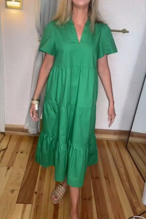 Women's Regular Dress Casual Shirt Collar Pocket Half Sleeve Solid Color Maxi Long Dress Holiday Daily
