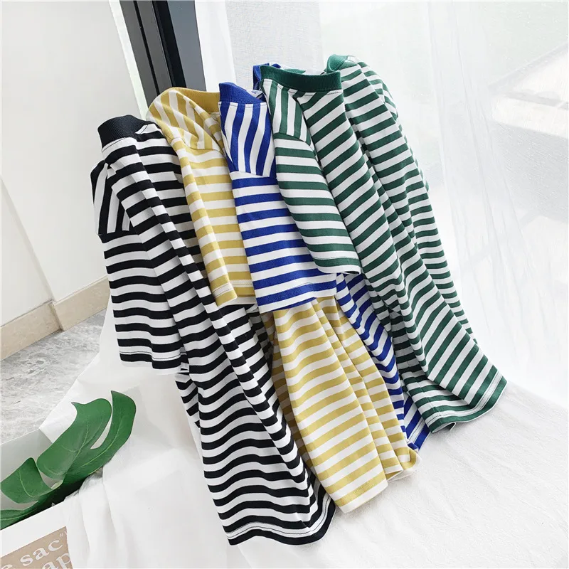 Wholesale women's t-shirt short sleeve t-shirts printing casual stripe