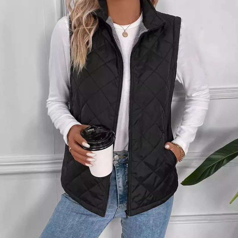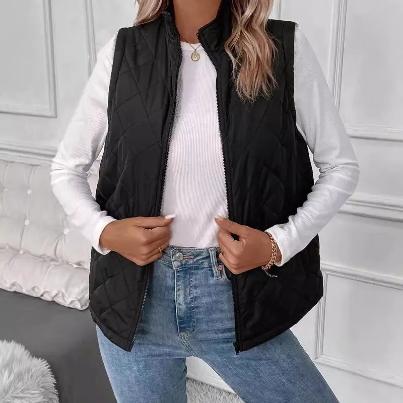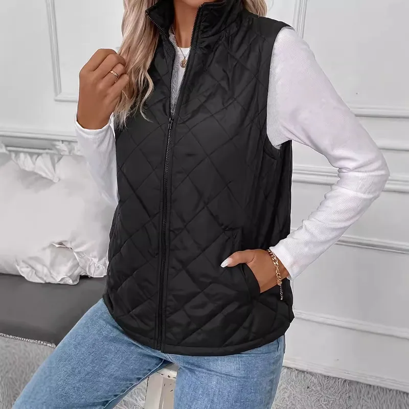 Wholesale Women's Simple Style Solid Color Zipper cotton clothes Vest