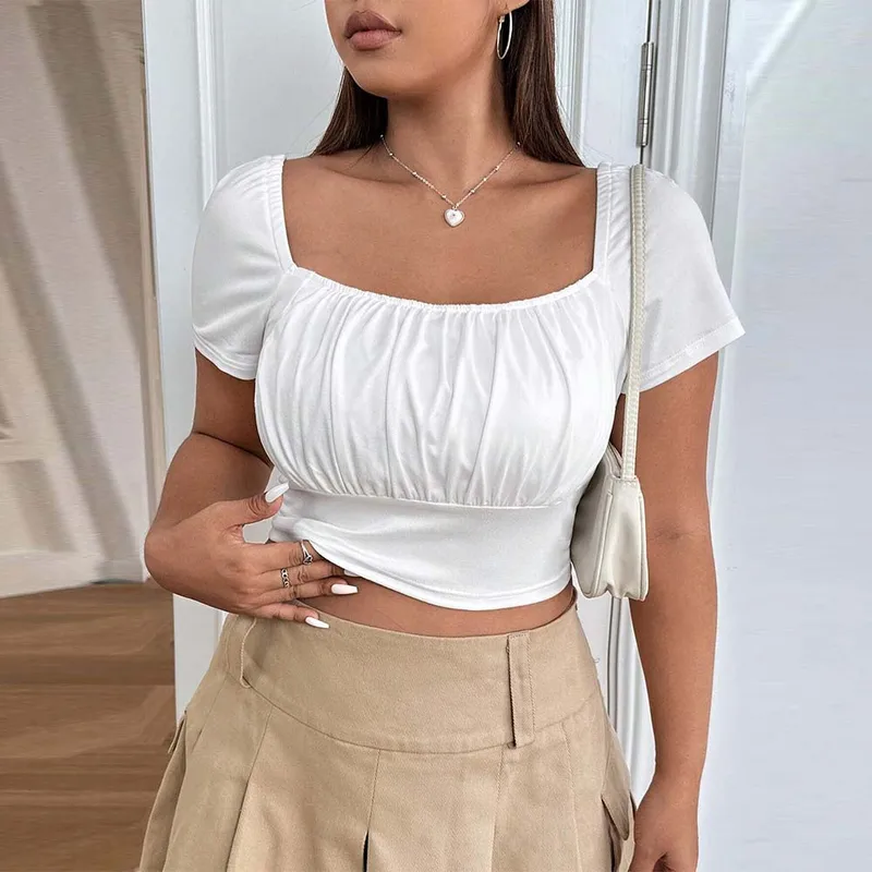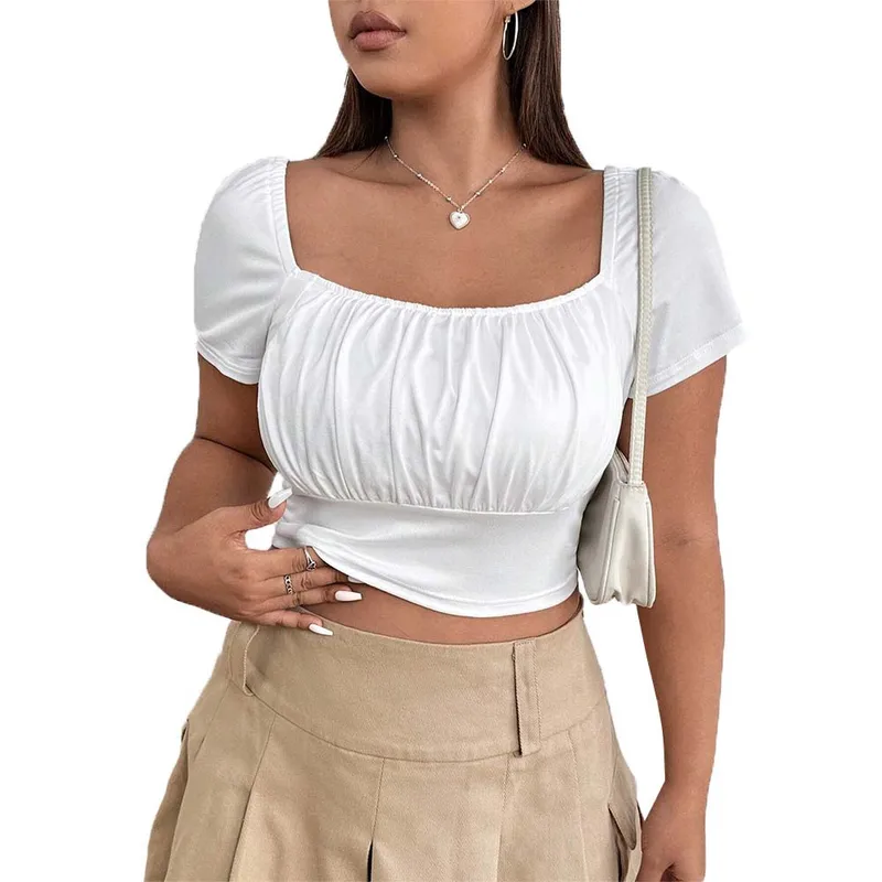 Wholesale Plus Size Women's Elegant Style Square Collar T-shirt Summer New Slim-fit Solid Color Short Top