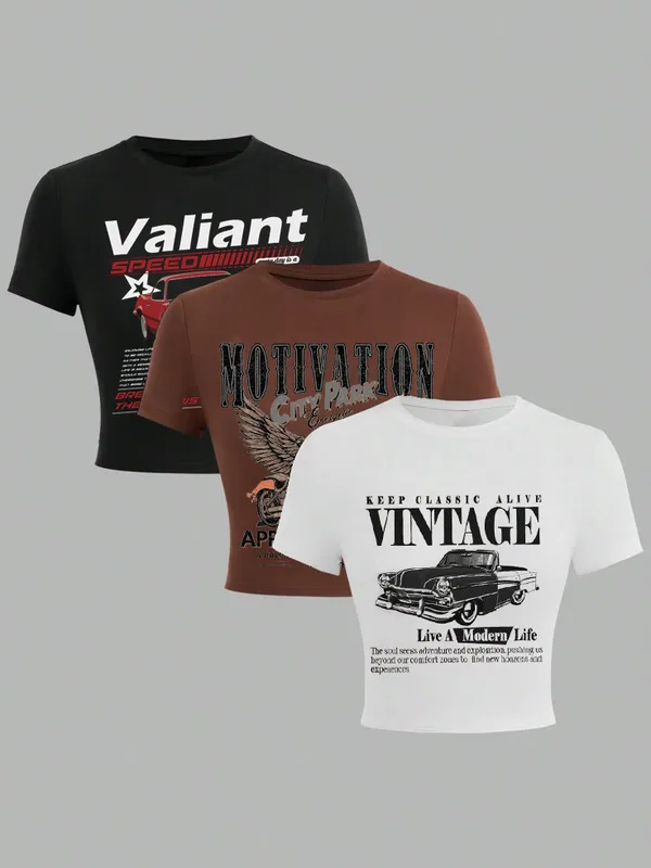 Women's T-shirt Short Sleeve T-Shirts Casual Basic Simple Style Letter Car