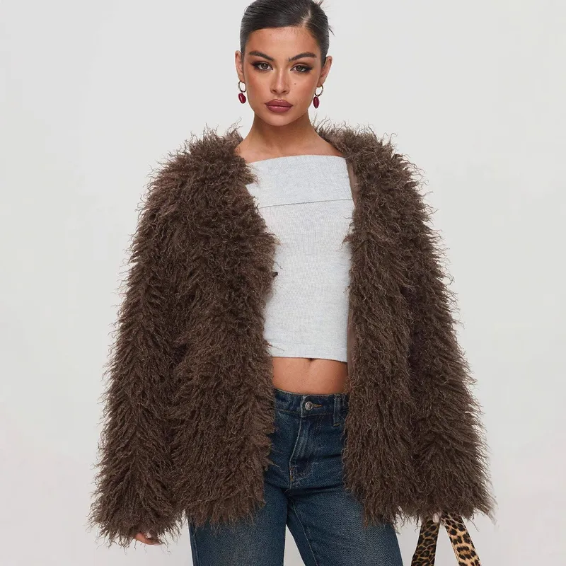 Wholesale Women's European and American wind Streetwear Solid Color Fur