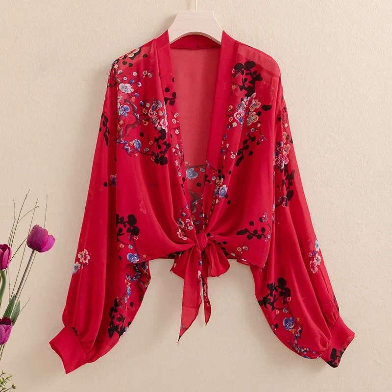 Wholesale Fudaiyi 2216 summer women's sunscreen chiffon bubble sleeve cardigan