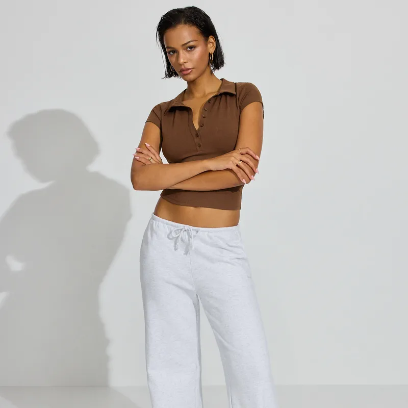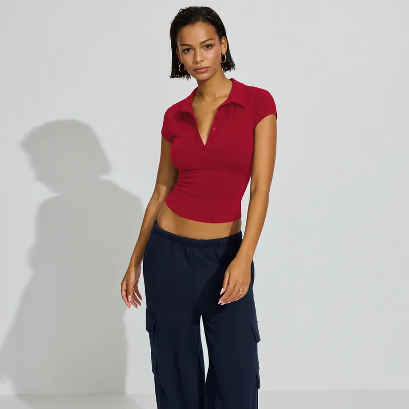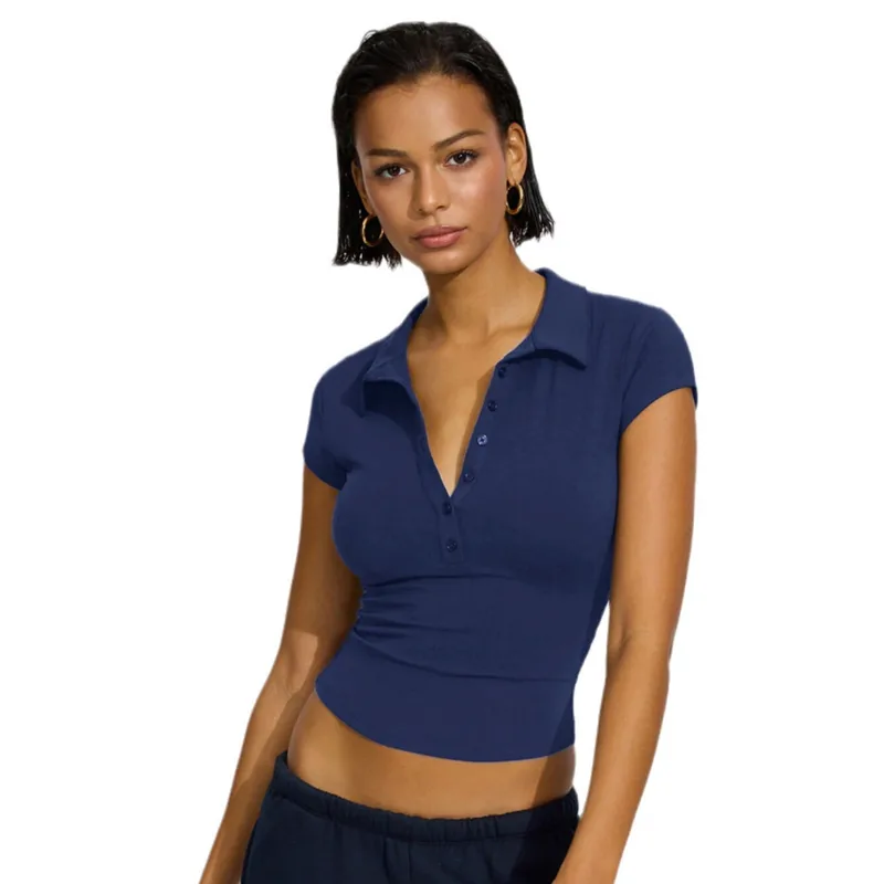 Wholesale Fashion Women's Spring and Summer New Polo Collar Button Tight-fit Sports Slimming Short-sleeved Top
