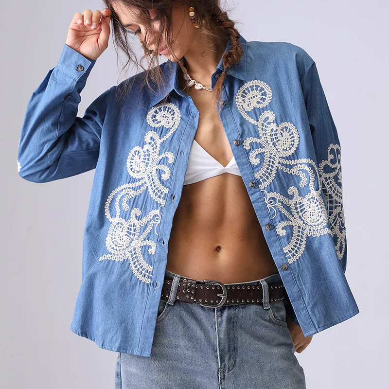 Wholesale Women's Adults Cardigan Shirt Long Sleeve Blouses Vintage Style French Style Solid Color