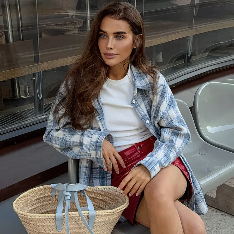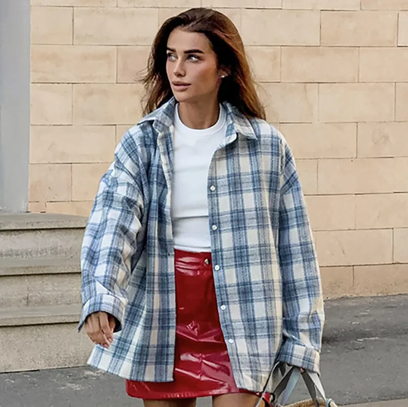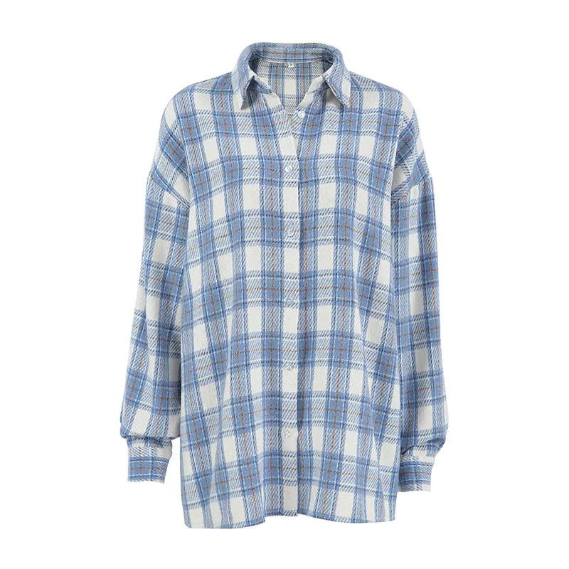 Wholesale Women's Blouse Long Sleeve Blouses Casual Plaid