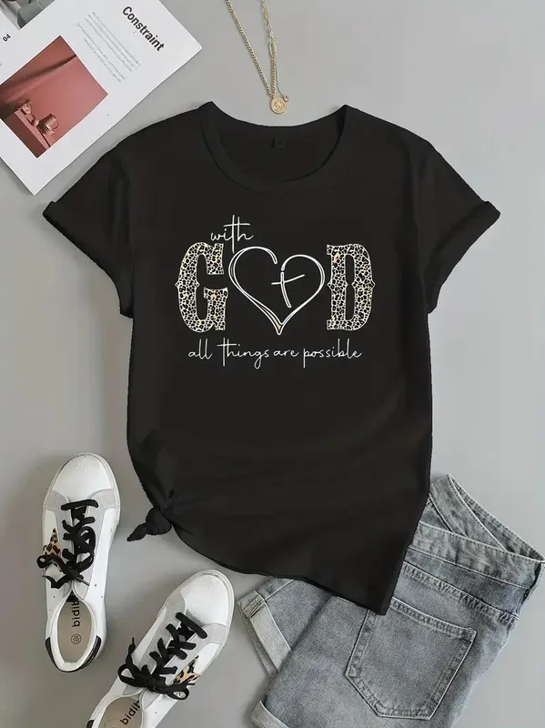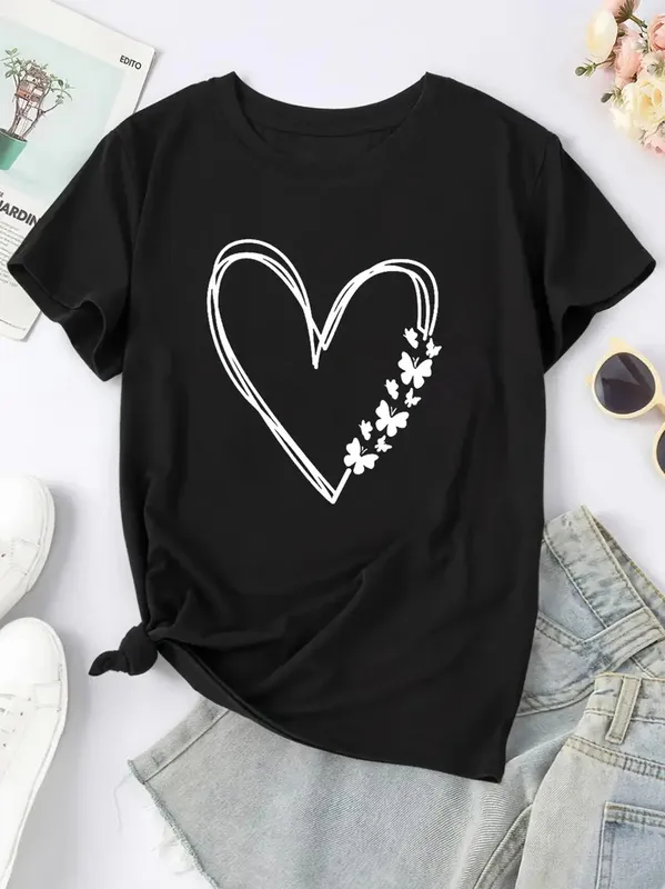 Women's T-shirt Short Sleeve T-Shirts Casual Letter Heart Shape Bow Knot