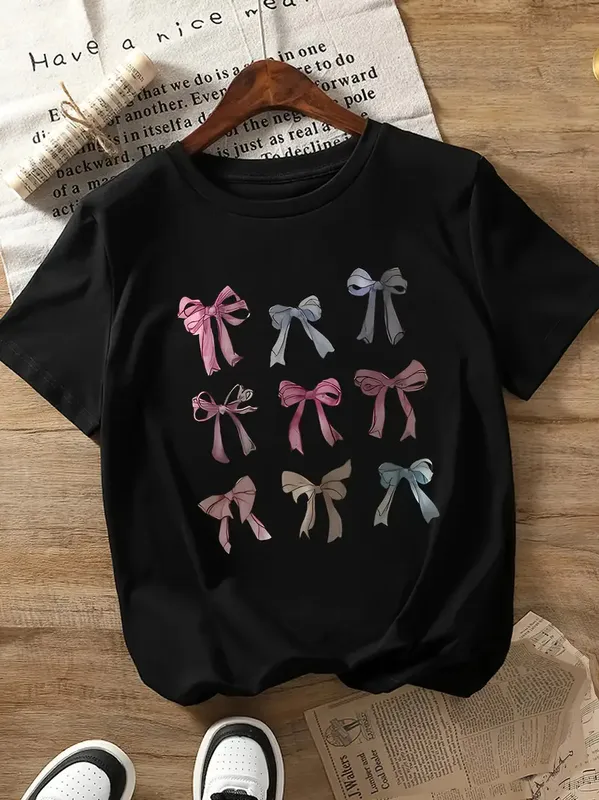 Wholesale Women's T-shirt Short Sleeve T-Shirts Casual Letter Heart Shape Bow Knot