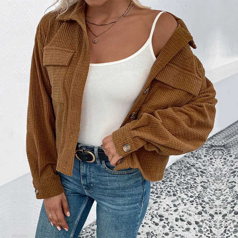 Wholesale Women's Casual Plaid Pocket Single Breasted Coat
