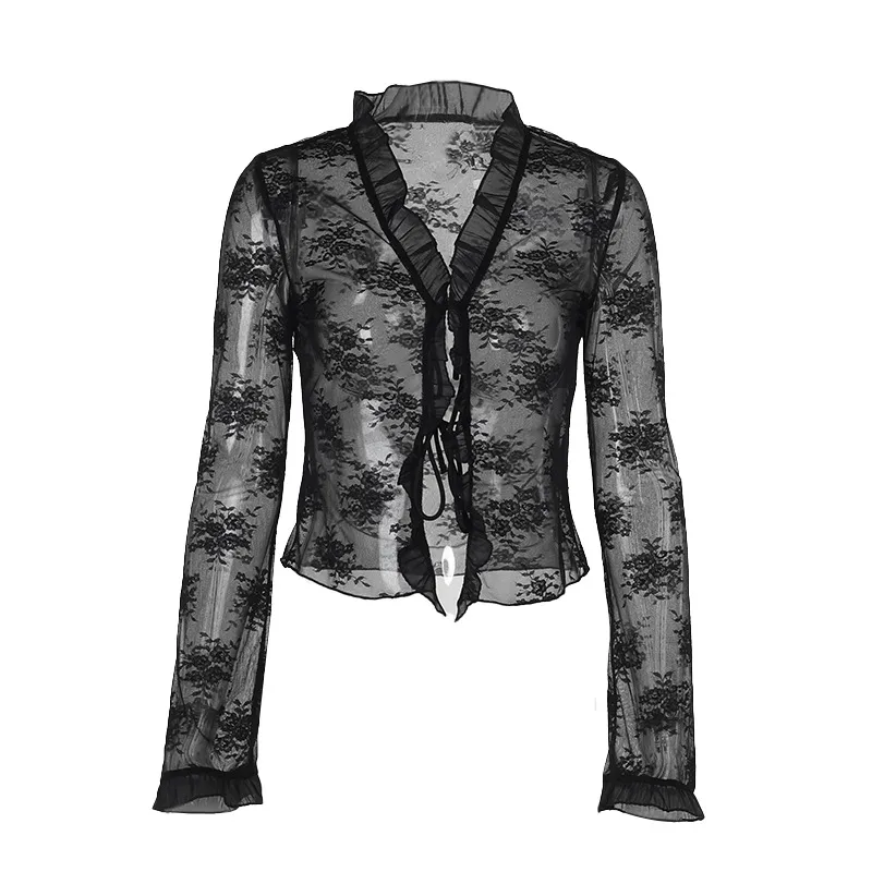 Wholesale Women's Cardigan Long Sleeve Blouses Sexy Solid Color