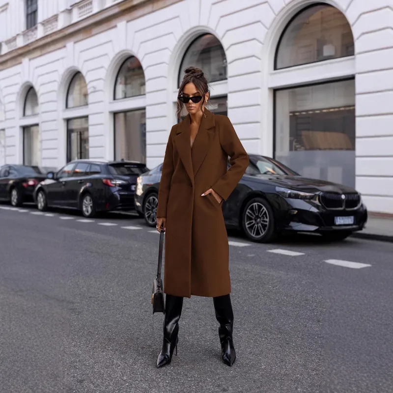 Women's Vacation Simple Style Solid Color Coat Woolen Coat
