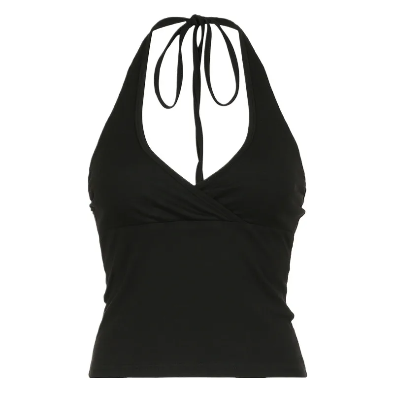 Wholesale Street Style Hot Girl Sexy Backless Halter Lace-up Vest Low-Cut V-neck Pure Desire Slim Strap Top
