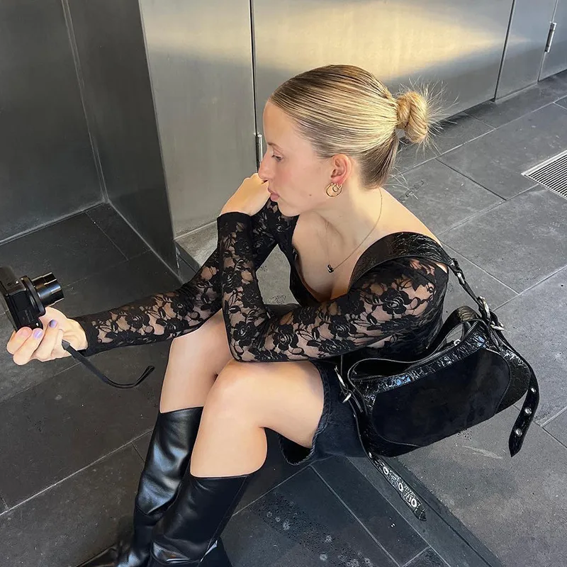 Women's T-shirt Long Sleeve T-Shirts Sweet Spicy Wind Simple Style Classic Style Solid Color