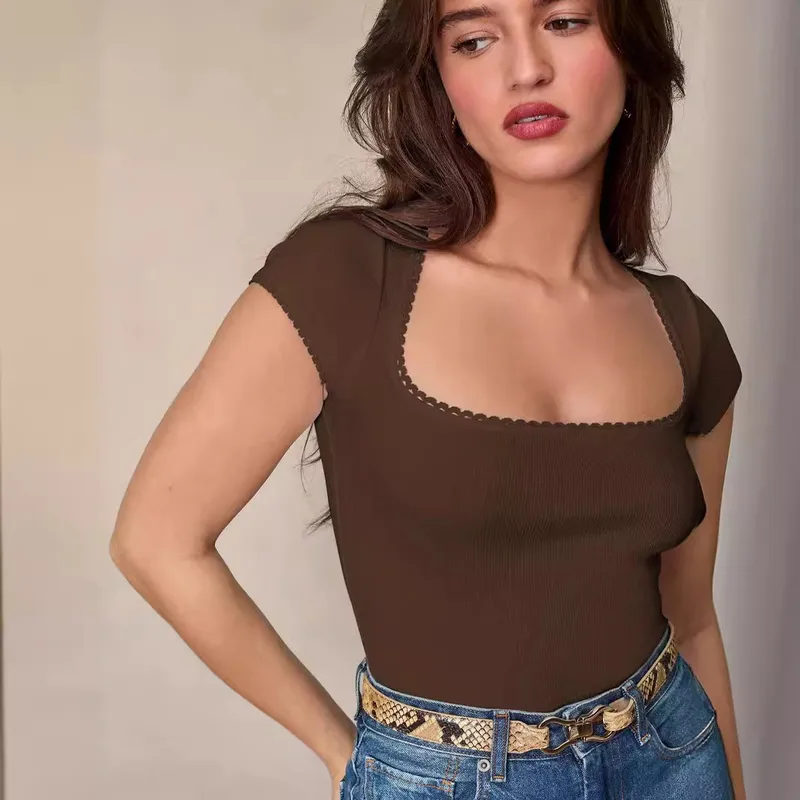 Wholesale Slim Figure Women's Summer New Pure Lace Y2K Top Spice Girls Shoulder Short-sleeved T-shirt