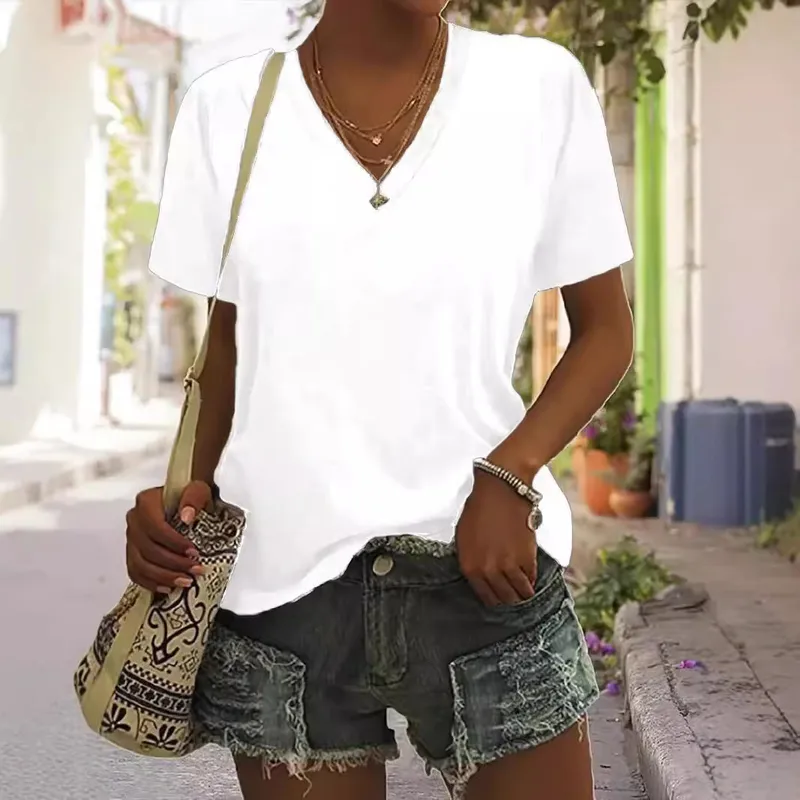 Wholesale Women's T-shirt Short Sleeve T-Shirts Casual Solid Color