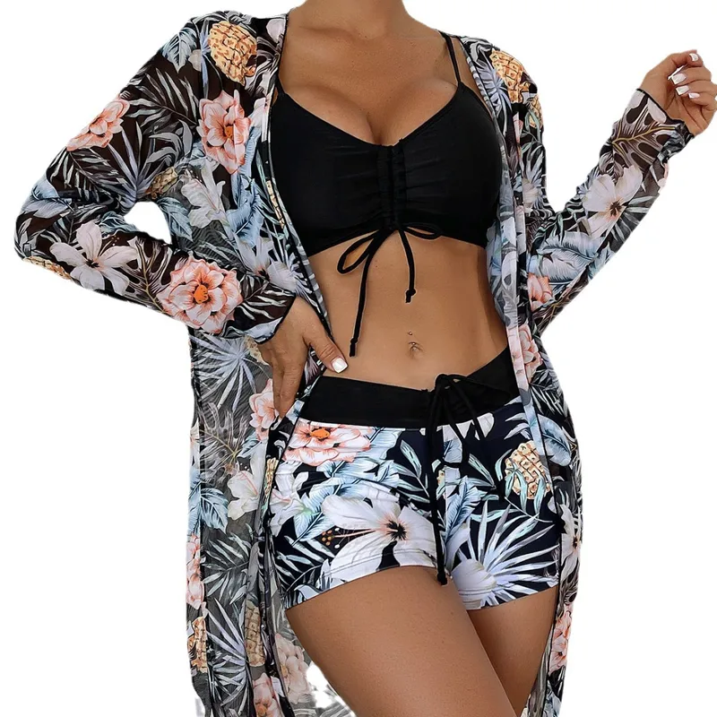Wholesale Women's Sexy Plant 3 Pieces Set Bikinis Swimwear