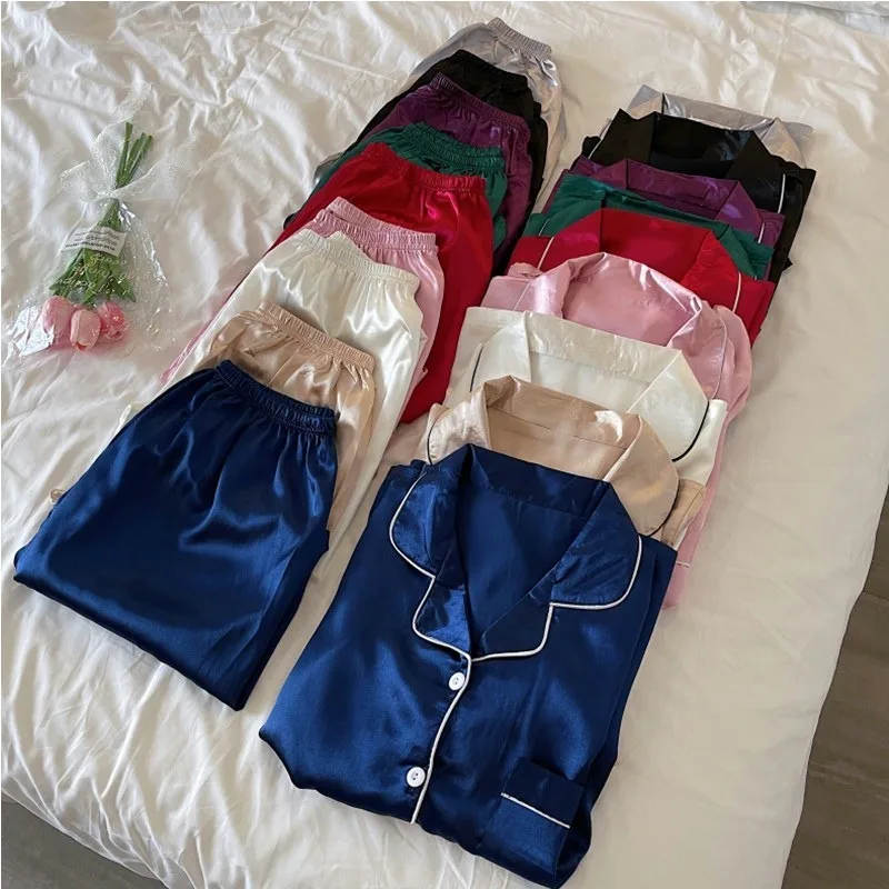 Wholesale home daily women's elegant simple style solid color imitated silk polyester shorts sets pajama sets