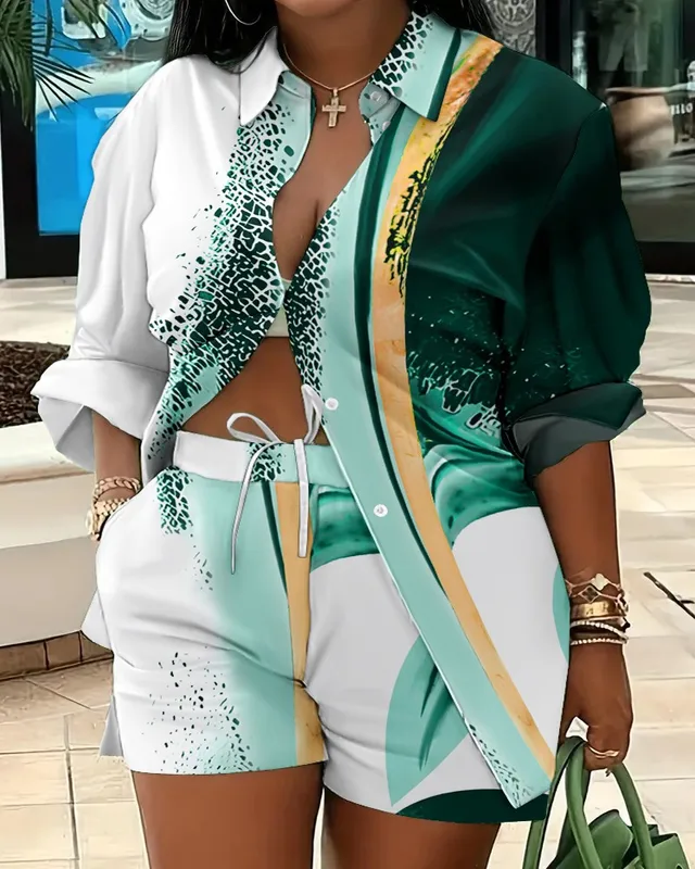 Holiday Street Women's Streetwear Color Block Polyester Pants Sets Shorts Sets