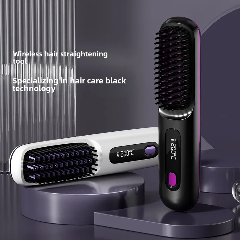 New LCD USB Charging Wireless Portable Curling Hair Straightening Comb Ceramic Heating Negative Ion Electronic Comb Hair Straightener