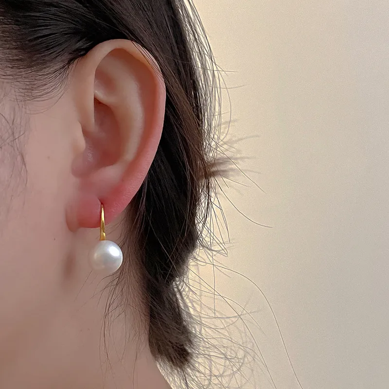 1 Pair Baroque Style Round Freshwater Pearl Copper Gold Plated Earrings