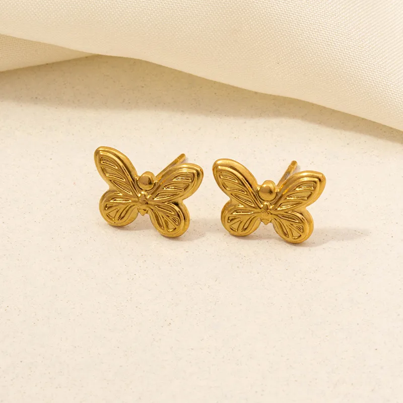 Wholesale 1 Pair Basic Modern Style Classic Style Leaves Heart Shape Butterfly Plating 304 Stainless Steel 18K Gold Plated Ear Studs