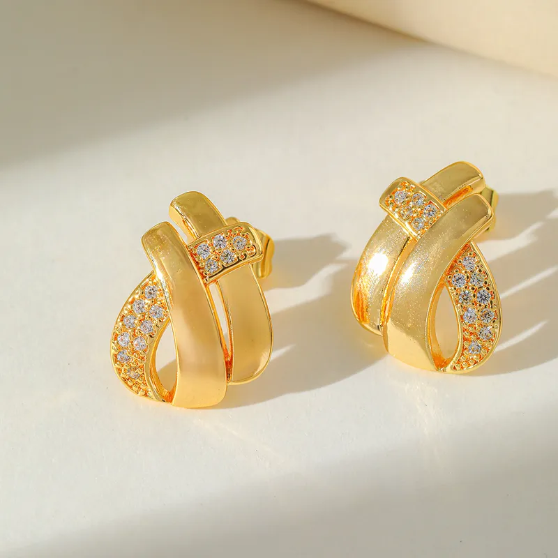 1 Pair Casual Elegant Shiny Irregular Geometric Inlay Copper Zircon Imitation Gold Earrings Ear Studs