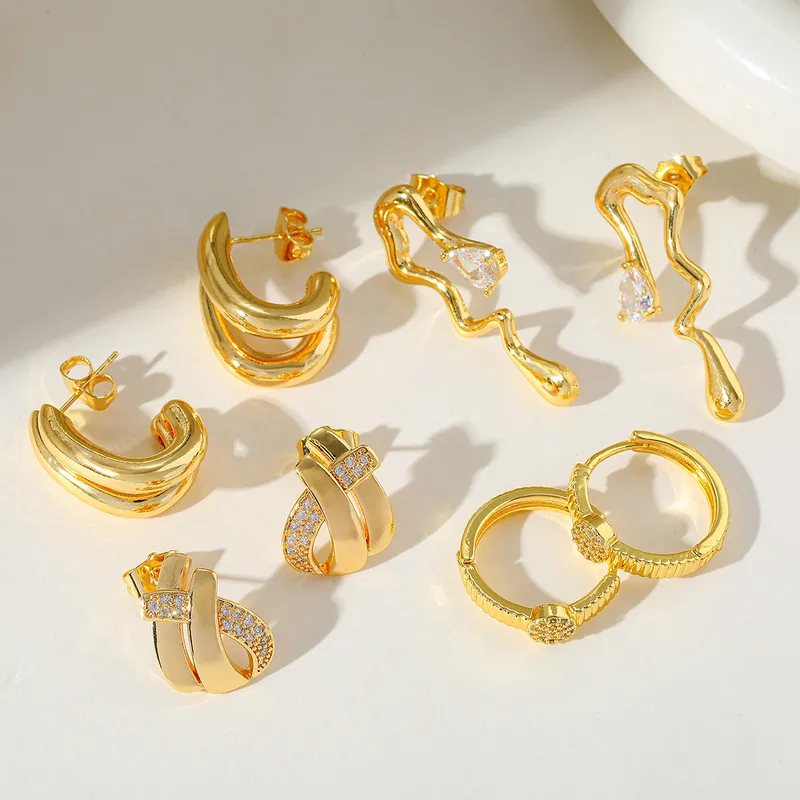 Wholesale 1 Pair Casual Elegant Shiny Irregular Geometric Inlay Copper Zircon Imitation Gold Earrings Ear Studs