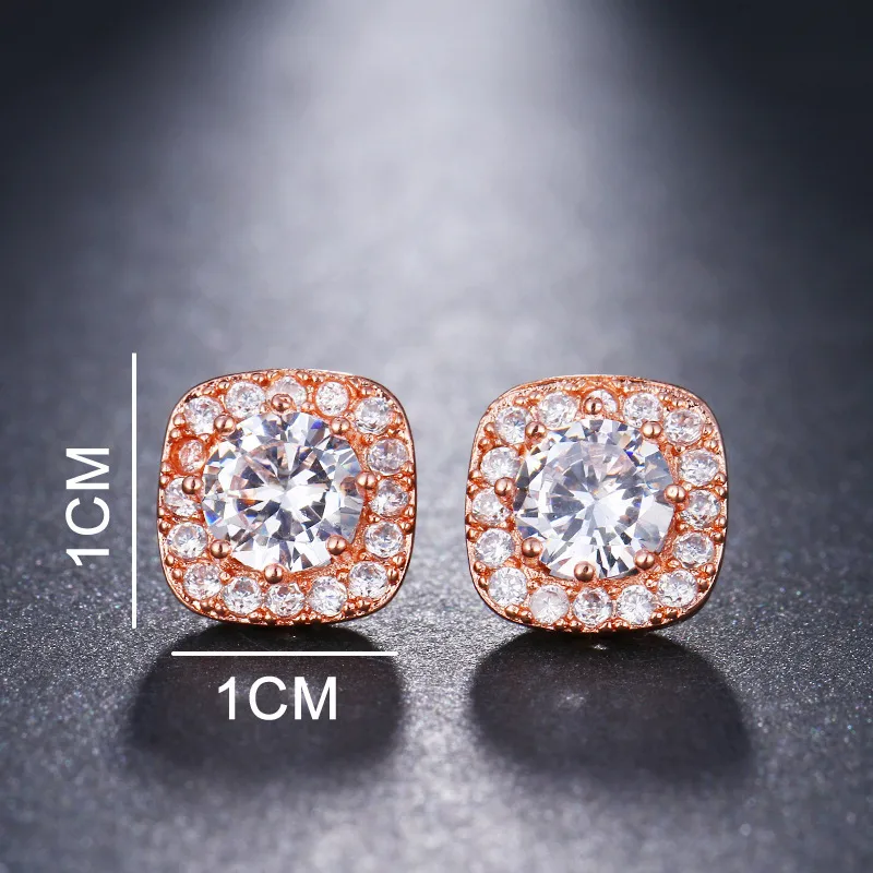 1 Pair Casual Simple Style Shiny Square Inlay Metal Zircon 18K Gold Plated Ear Studs