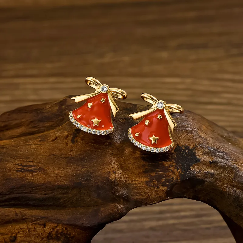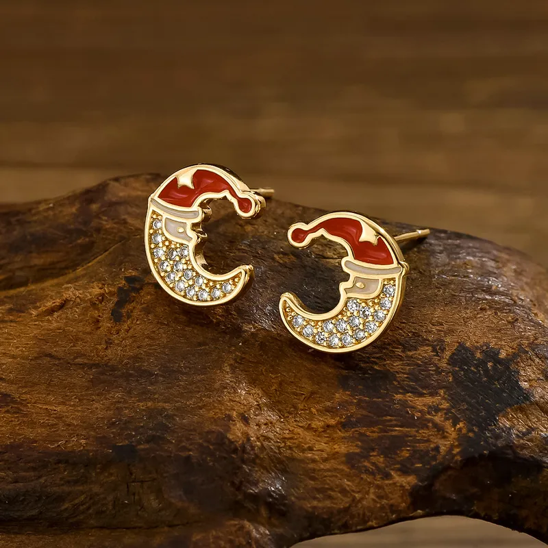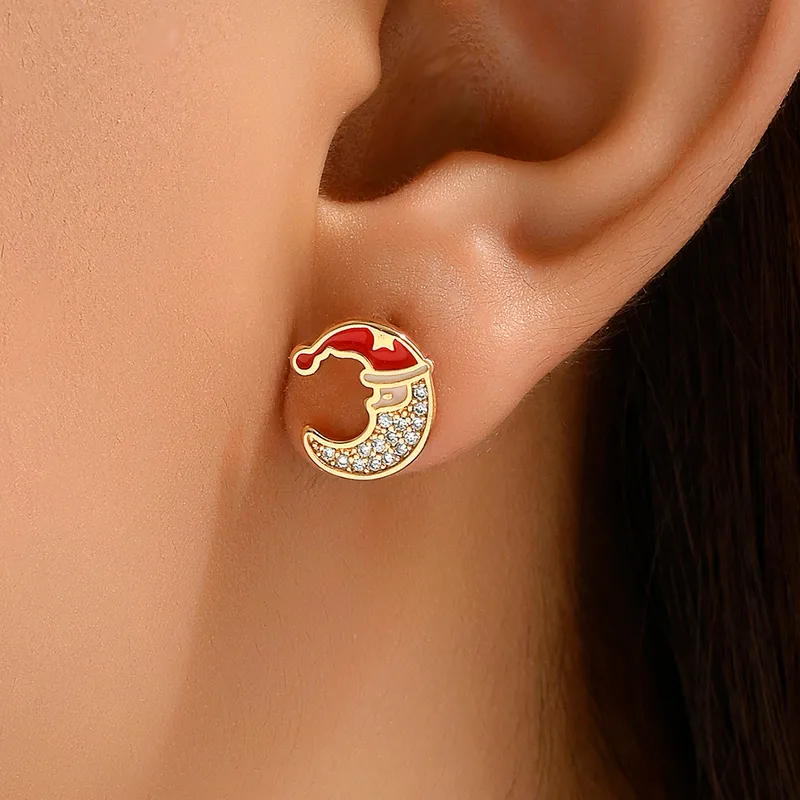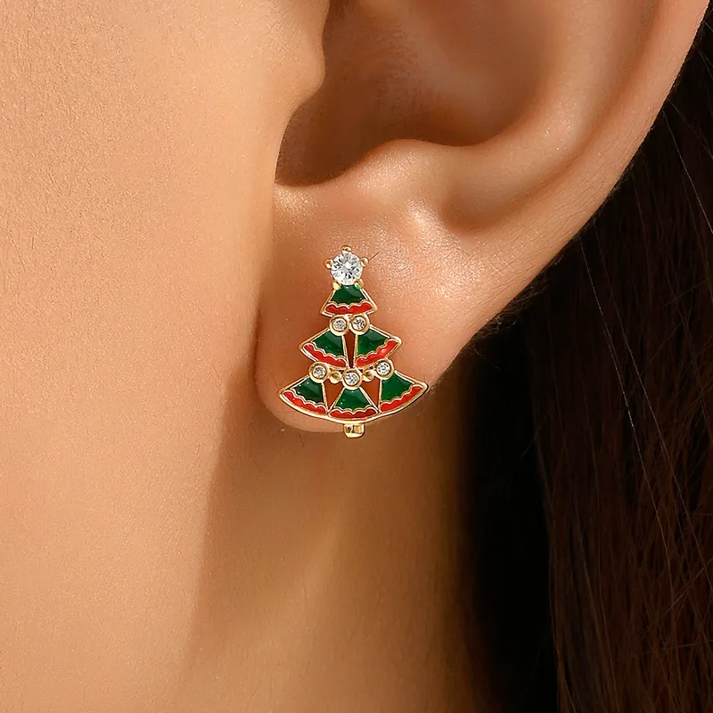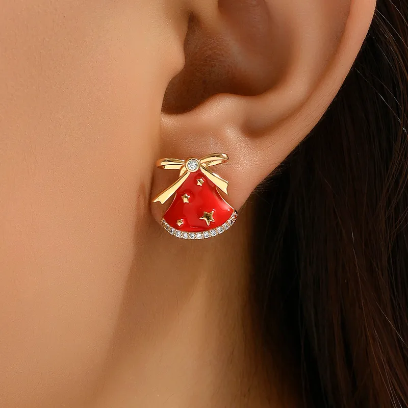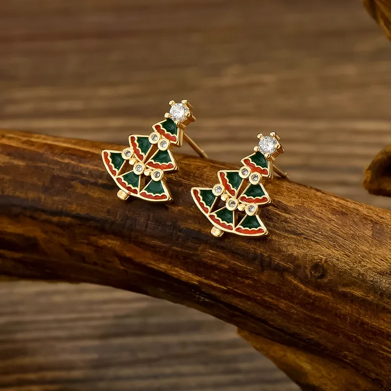 Wholesale 1 Pair Cute Sweet Christmas Tree Moon Bow Knot Enamel Plating Inlay Copper Alloy Zircon 18K Gold Plated Ear Studs