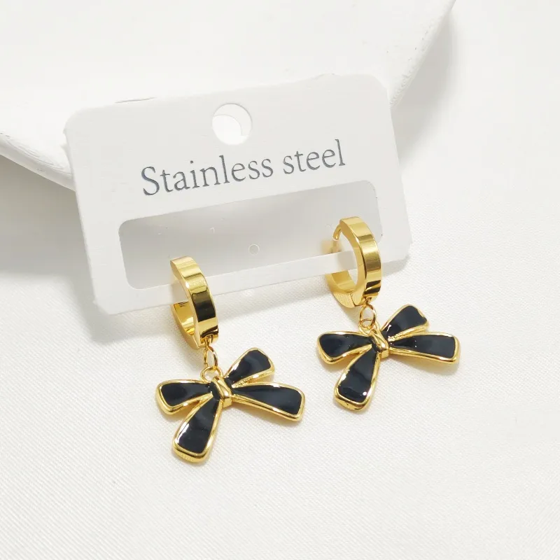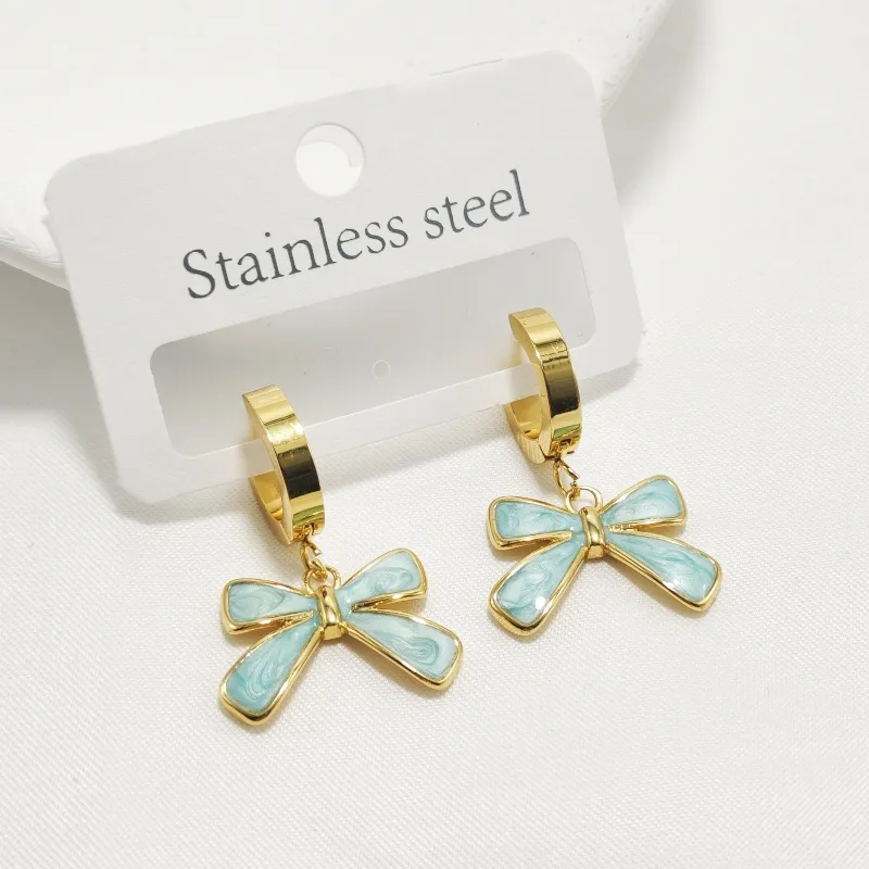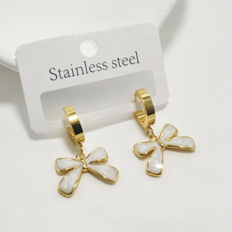 Wholesale 1 Pair Elegant Lady Bow Knot Enamel 304 Stainless Steel 18K Gold Plated Drop Earrings