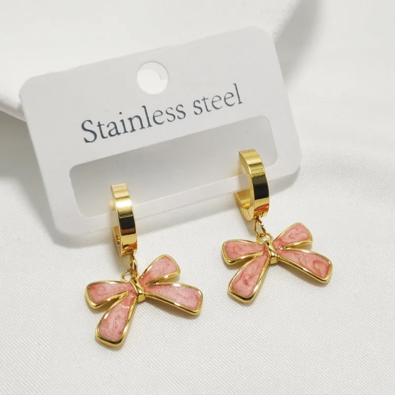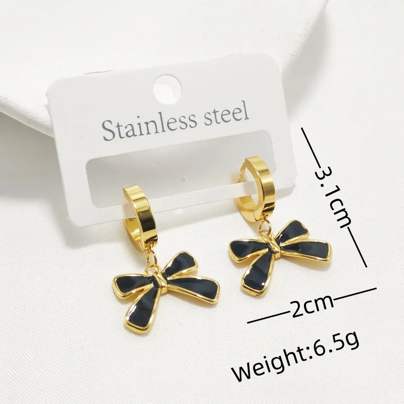 1 Pair Elegant Lady Bow Knot Enamel 304 Stainless Steel 18K Gold Plated Drop Earrings