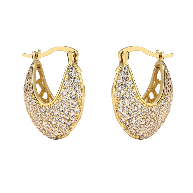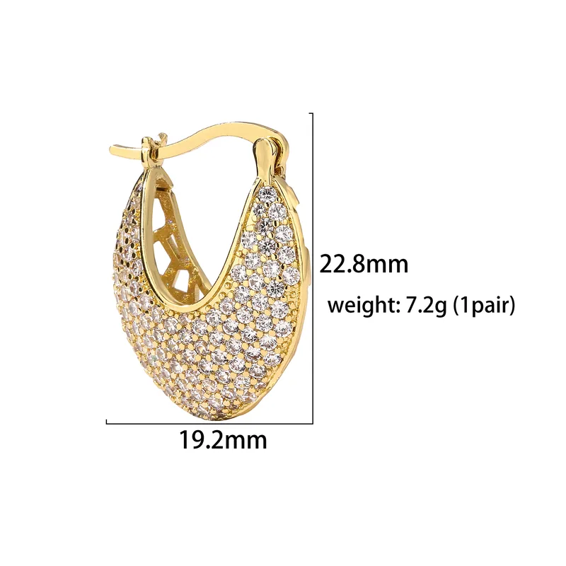 Wholesale 1 pair elegant luxurious shiny v shape plating hollow out inlay copper zircon 18k gold plated earrings