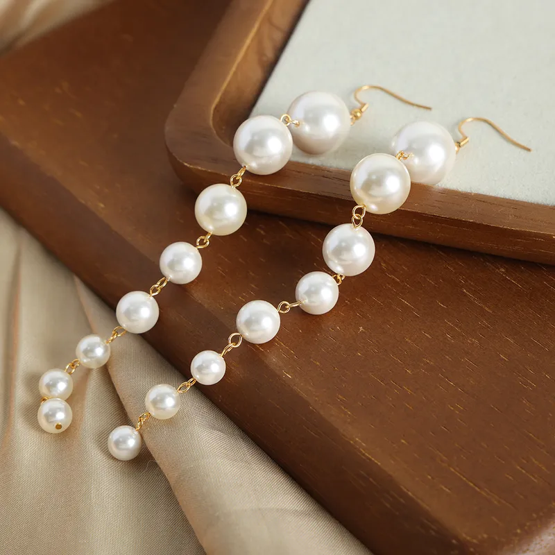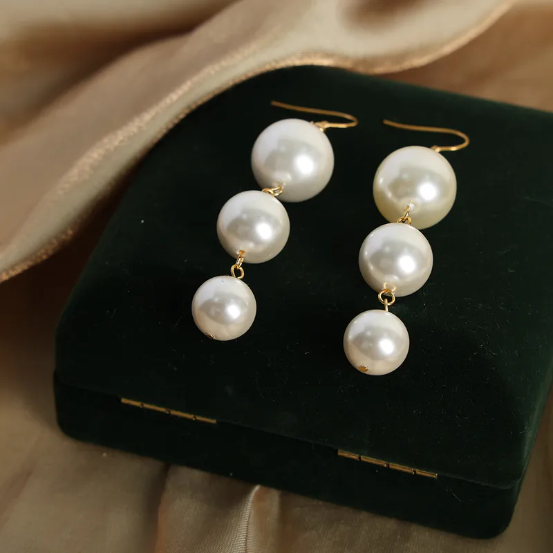 1 Pair Elegant Simple Style Solid Color Beaded Plating Imitation Pearl Titanium Steel 18k Gold Plated Drop Earrings