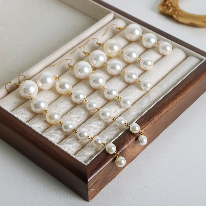 Wholesale 1 pair elegant simple style solid color beaded plating imitation pearl titanium steel 18k gold plated drop earrings
