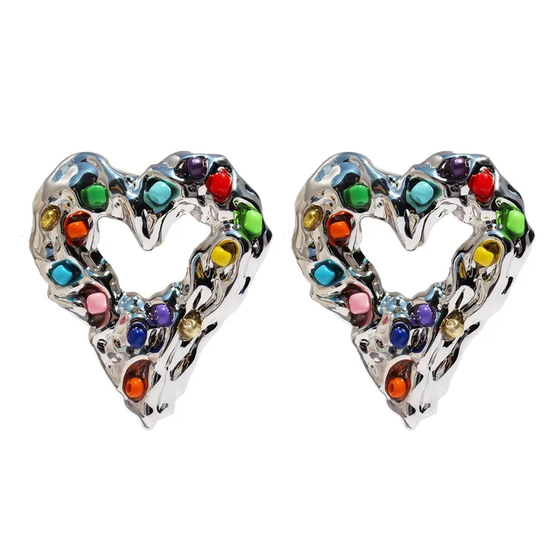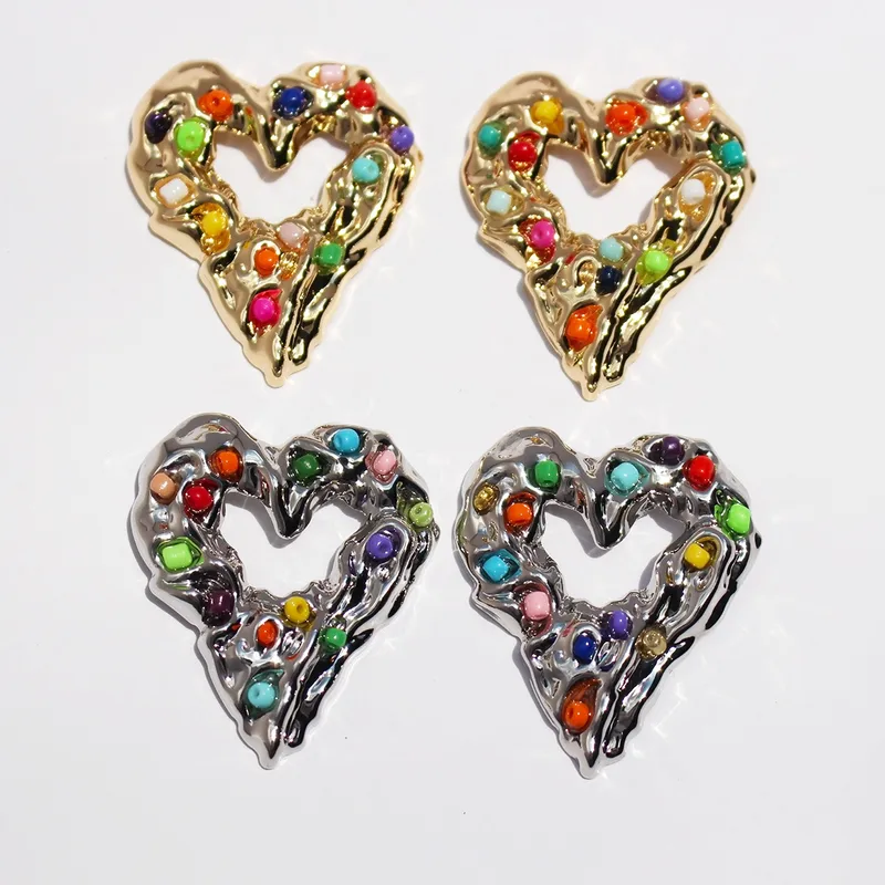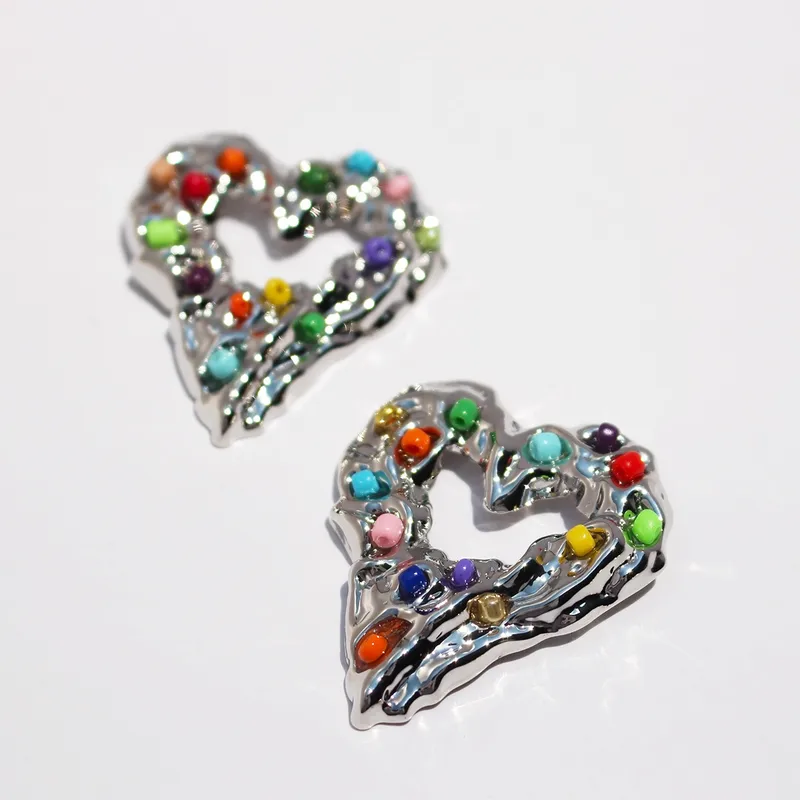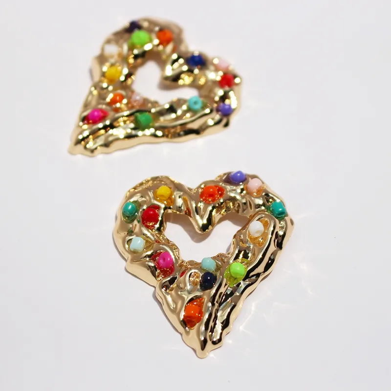 1 Pair Elegant Streetwear Geometric Heart Shape Plating Pleated Inlay Alloy Seed Bead Ear Studs