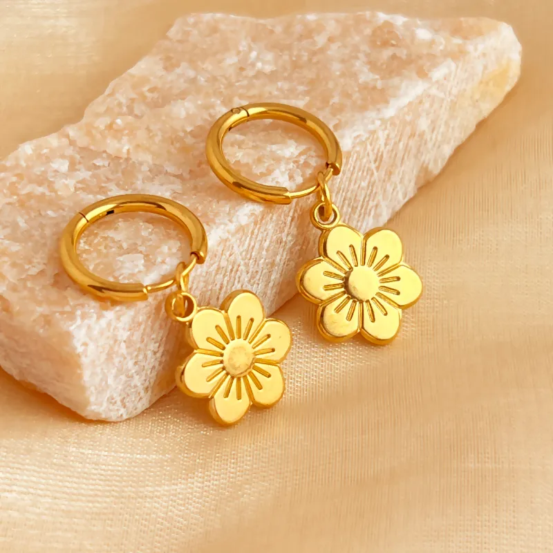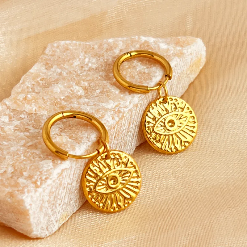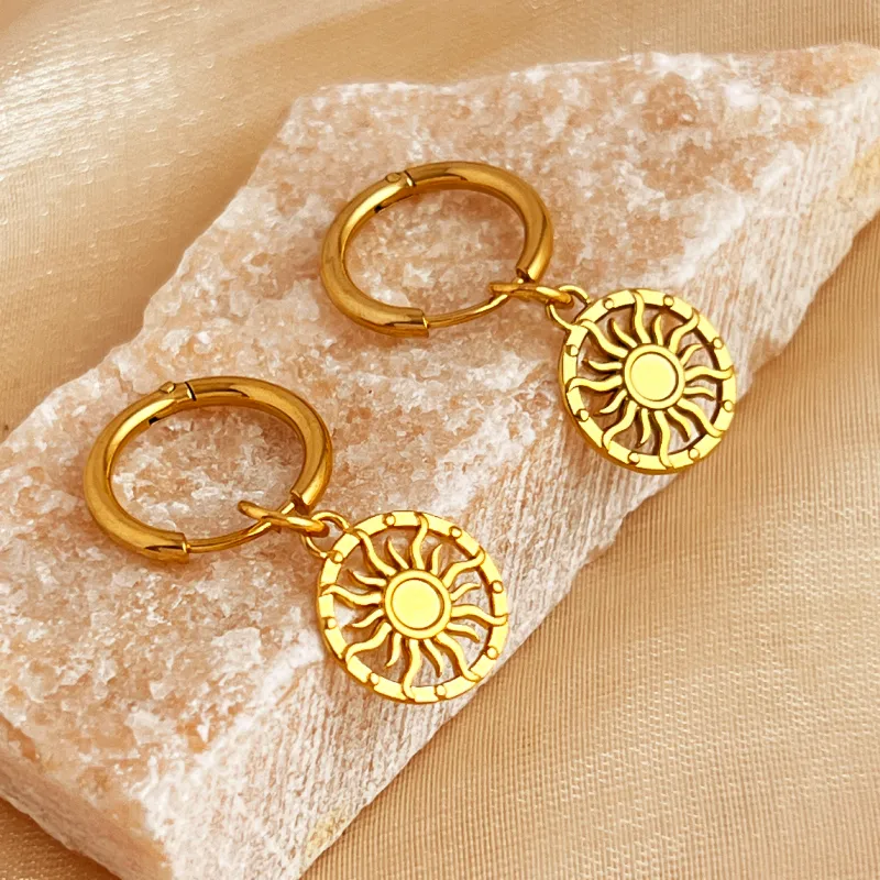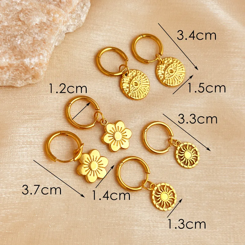 1 Pair Elegant Vacation Sunflower Devil's Eye Polishing Plating 201 Stainless Steel 18K Gold Plated Drop Earrings