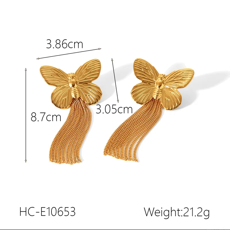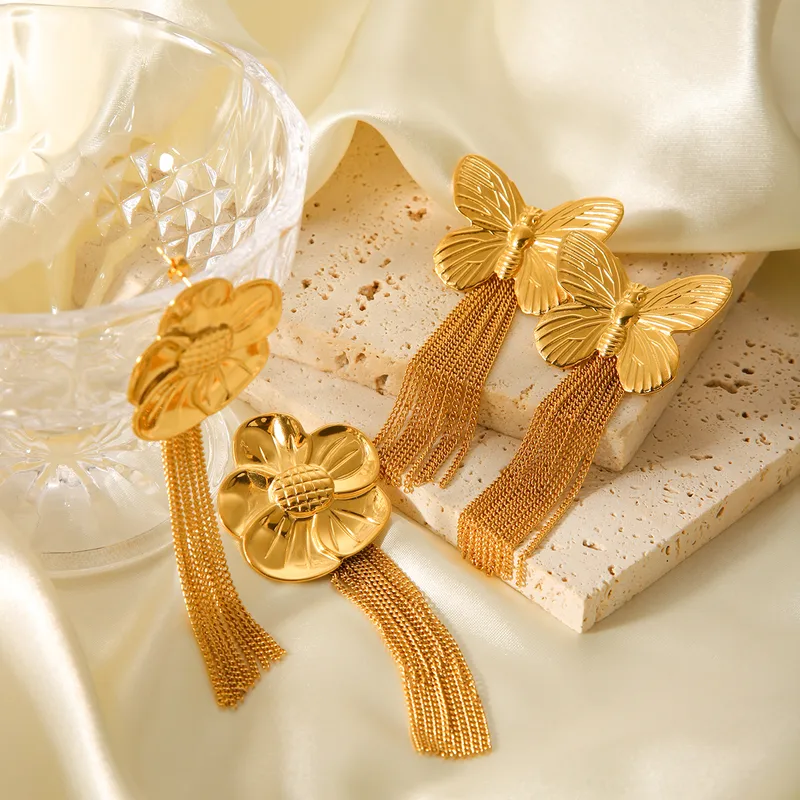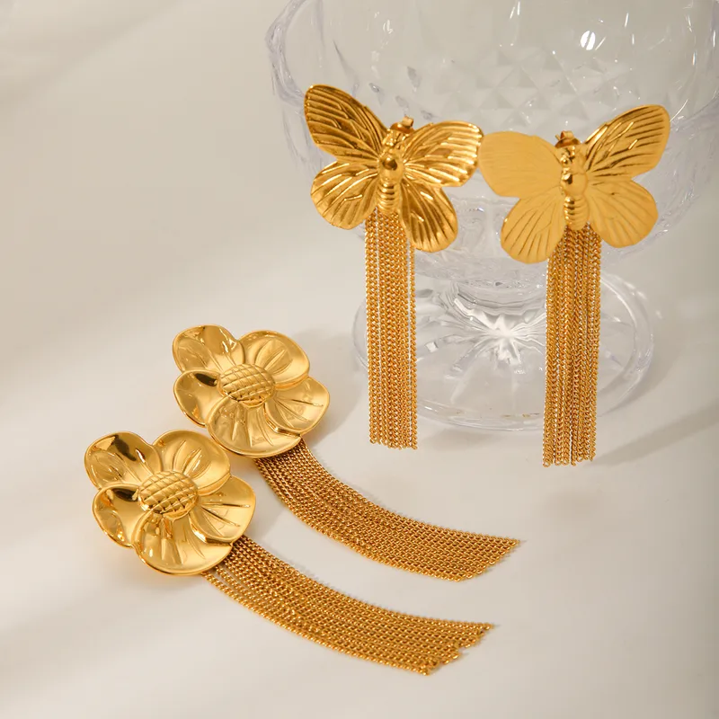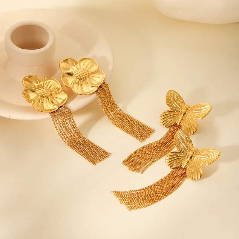 Wholesale 1 Pair IG Style Sunflower Butterfly Chain 304 Stainless Steel Titanium Steel 18K Gold Plated Drop Earrings