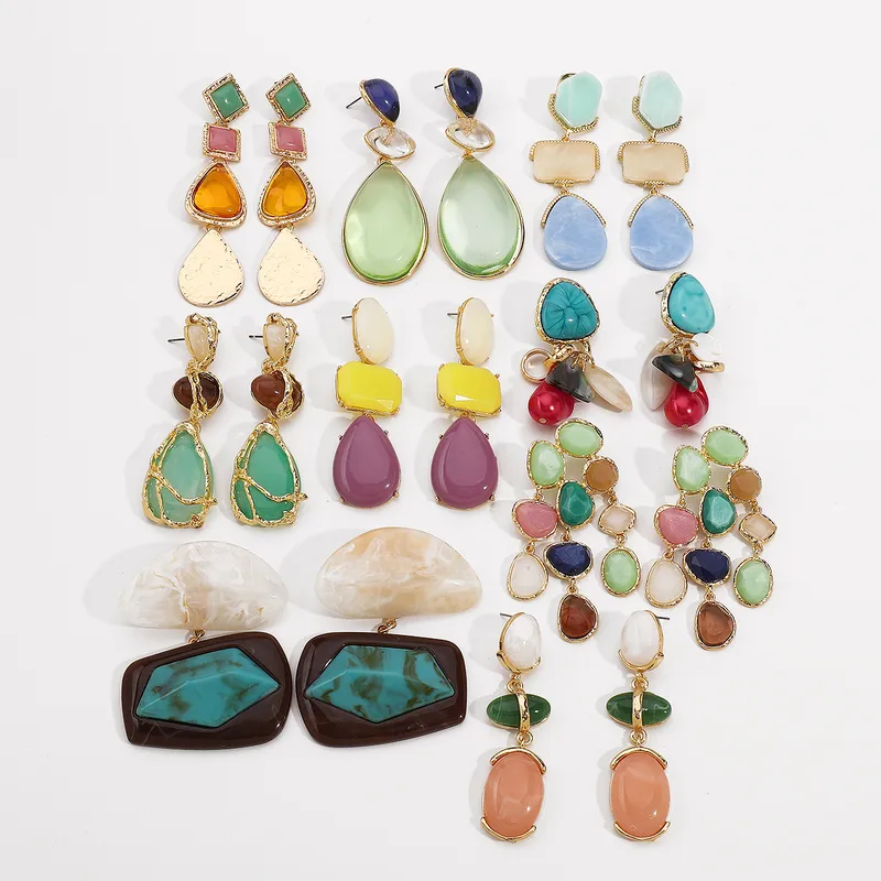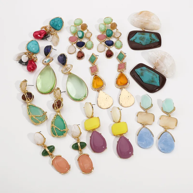 1 Pair IG Style Geometric Water Droplets Alloy Resin Drop Earrings